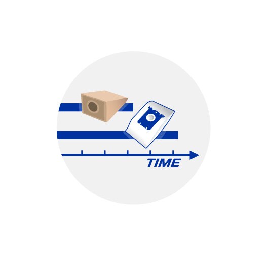 Syntetiske DURAFLOW™ Fresh støvsugerposer har op til 50% længere brugstid end almindelige støvsugerposer af papir. Dette skyldes materialets struktur, der giver posen en forbedret støvbæreevne, samtidig med at den har en konstant høj sugeeffekt, mens posen fyldes.